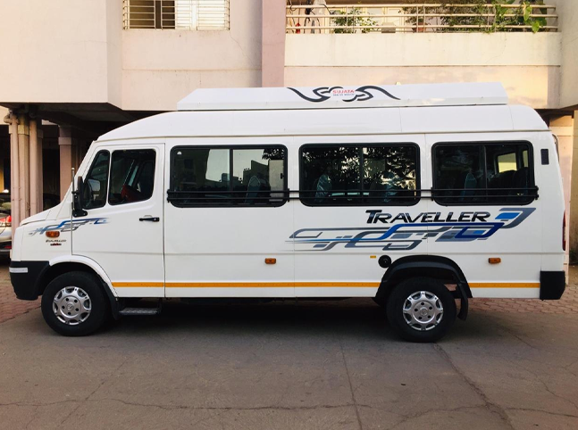 The 17 seat tempo traveller rate per kilometer depends on total distance traveled. Competitive pricing for longer routes.